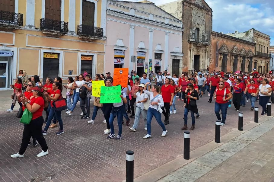 En Mérida, las manifestaciones se realizaron en el Centro Histórico y en el Congreso del Estado, como parte de una movilización nacional y en las que participan docentes de la Coordinadora Nacional de Trabajadores de Educación (CNTE) y del Sindicato Nacional de Educación Superior el SNES,