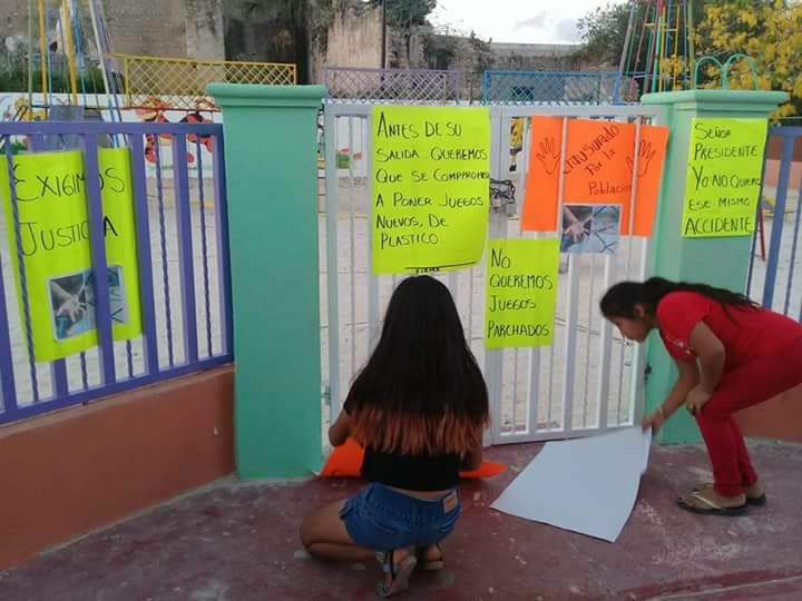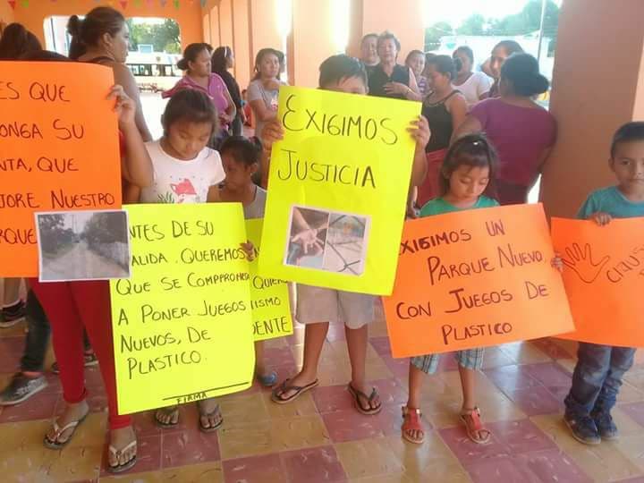 Por tal razón, se organizaron para exigirle al alcalde de Teya, Porfirio Arceo Coral, que cambie los juegos actuales por unos de plástico para garantizar la seguridad de los niños de la localidad.