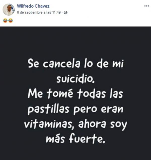 “Se cancela lo de mi suicidio, Me tomé todas las pastillas pero eran vitaminas, ahora soy fuerte” (SIC).
