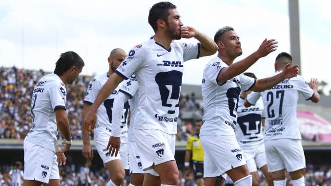 Fue al minuto 75 cuando un centro por derecha es rematado de rabona por Carlos González y, tras la parada de Barovero, Juan Pablo Vigón remata con la cabeza para darle los tres puntos y el liderato del torneo a los Pumas.