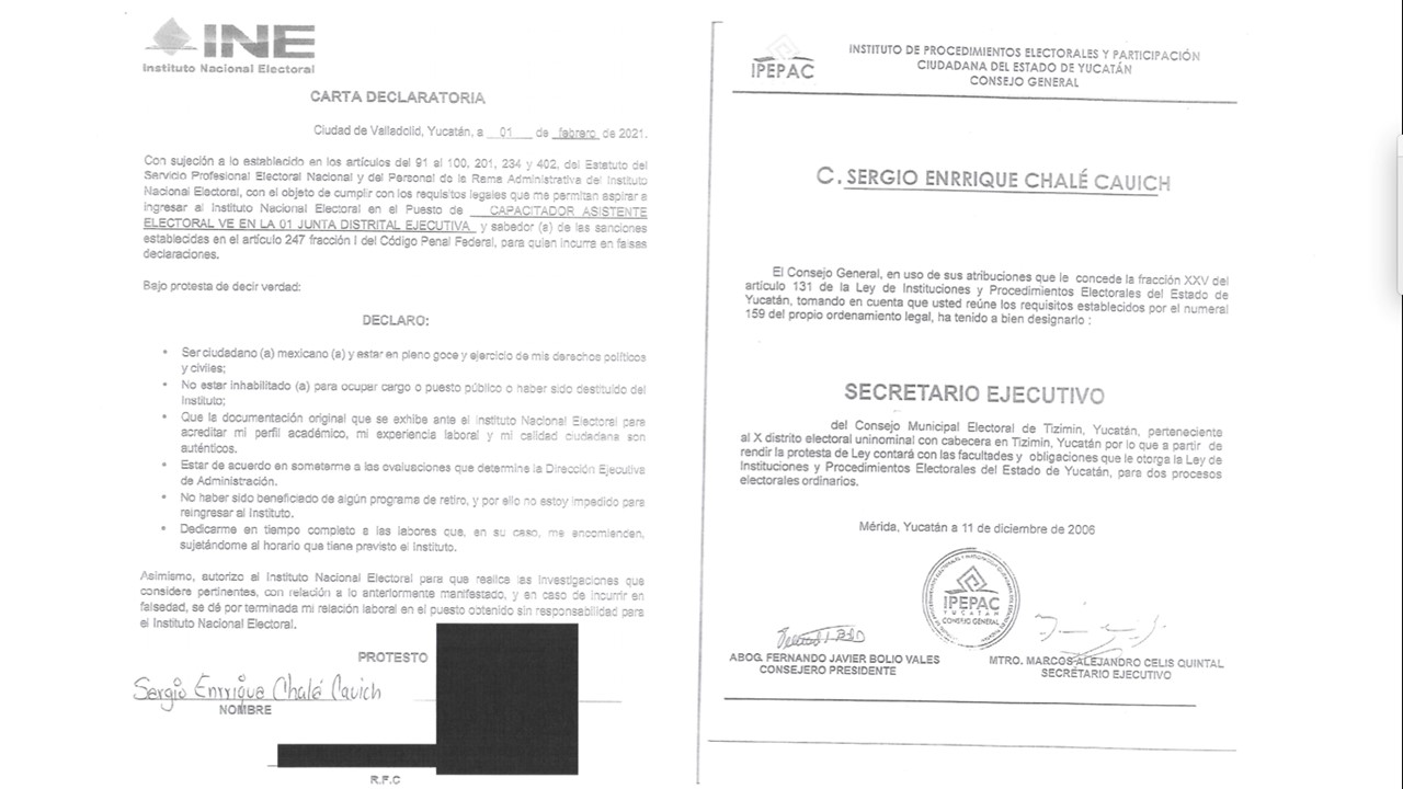 Según documentos presentados, hasta el 1 de febrero, Chalé Cauich, se desempeñó como capacitador asistente electoral de la Junta Distrital 1.