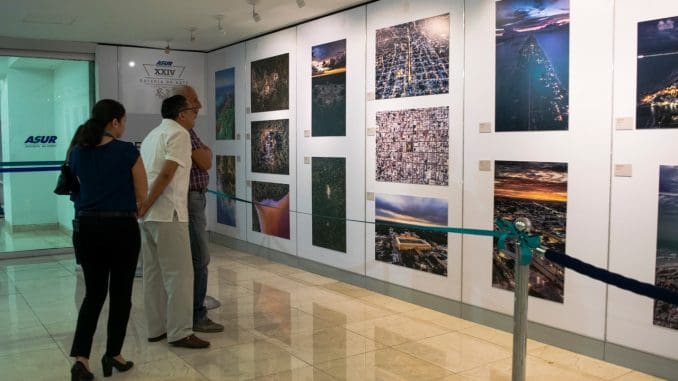Mérida, Yucatán, 19 de febrero de 2020.- El Museo Regional de Antropología Palacio Cantón inauguró en el Aeropuerto Internacional de la Ciudad de Mérida la exposición fotográfica “Península. Cartografía simbólica”, con imágenes del archivo aerofotográfico de la Fundación ICA y la obra del fotógrafo Santiago Arau Pontones.
