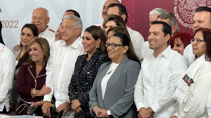 Por ello, López Obrador reconoció el Gobierno de Yucatán y de las entidades federativas que han instalado su Mesa de Coordinación Estatal para la Construcción de la Paz, cuerpo colegiado que suma las voluntades de todas las instancias de seguridad del estado.