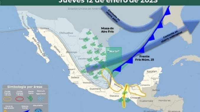 Asimismo, el ingreso del frente frío No. 23 se espera que ingrese a la entidad la tarde o noche de mañana. El fenómeno provocará vientos de 70 kilómetros por hora y olas de 3 metros de altura.