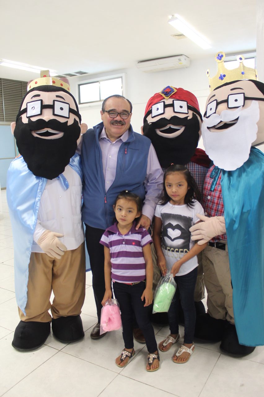 Ramírez Marín saludó y convivió con los pequeños y sus familias, y apoyado por unas botargas vestidos de Reyes Magos repartió juguetes a los niños.