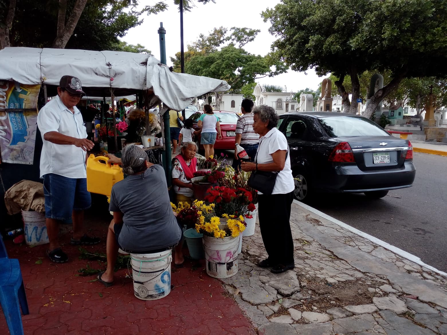 Mérida, Yucatán, 1 de noviembre de 2018.- Vendedores, principalmente de comida y de flores de diversos panteones de la ciudad reconocieron que las ventas han sido bajas, lejos de lo que ocurría en años atrás durante las fechas en que se celebran a los muertos.
