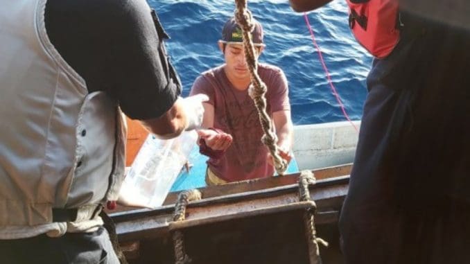 Durante el vuelo de reconocimiento se ubicó la embarcación a 144 kilómetros al norte de Ciudad del Carmen y una vez que se estableció contacto con la embarcación, la tripulación de la Patrulla Oceánica rescató a los tres pescadores.