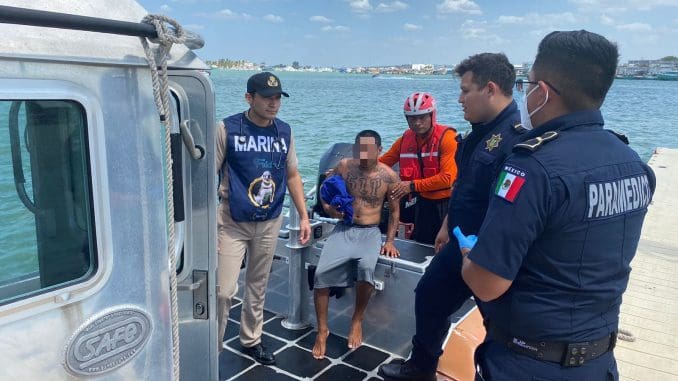 Ante situación, los marinos acudieron en una lancha rápida con personal médico y equipo especializado para atender al hombre de 26 años de edad, reportando su estado de salud como grave y al llegar a tierra fue llevado a un hospital para ser atendido.