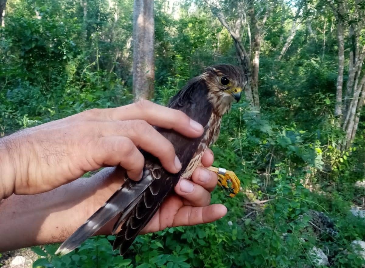 Mérida, Yucatán, a 23 de octubre de 2023.- En Yucatán, activistas de la asociación Proyecto Santa María rescataron y liberaron a un ave migratoria de la especie halcón esmerejón, que en días pasados colisionó con una ventana en Mérida