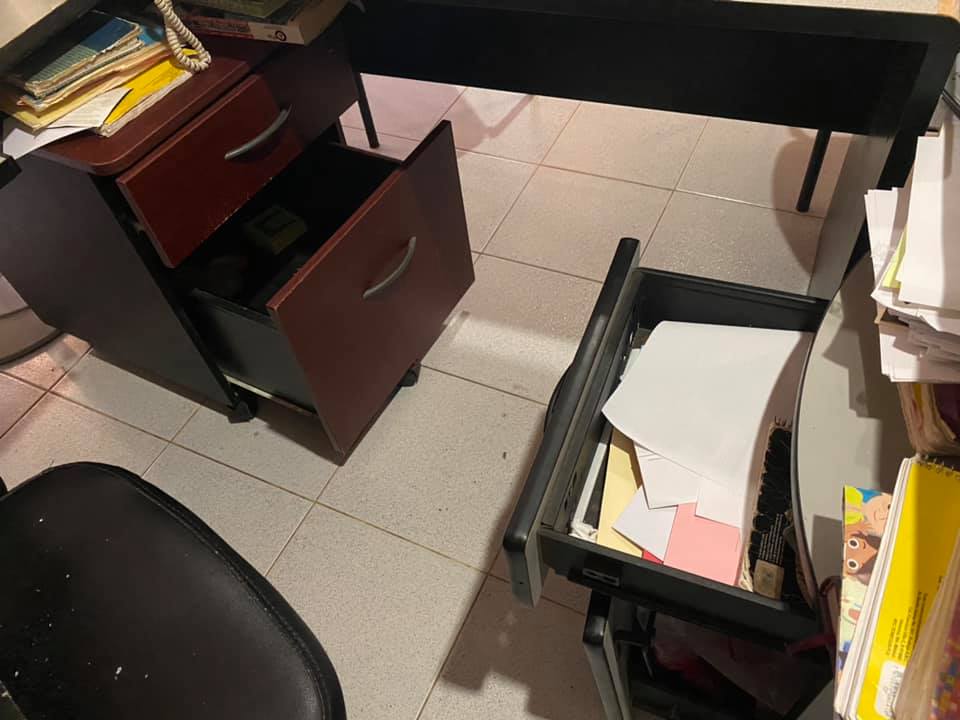 Señaló que en la oficina parroquial hay papelería revuelta y cajones rotos, de donde los amantes de lo ajeno sustrajeron una caja de seguridad con algo de efectivo, además de que se llevaron la bicicleta que se usa para hacer diligencias.