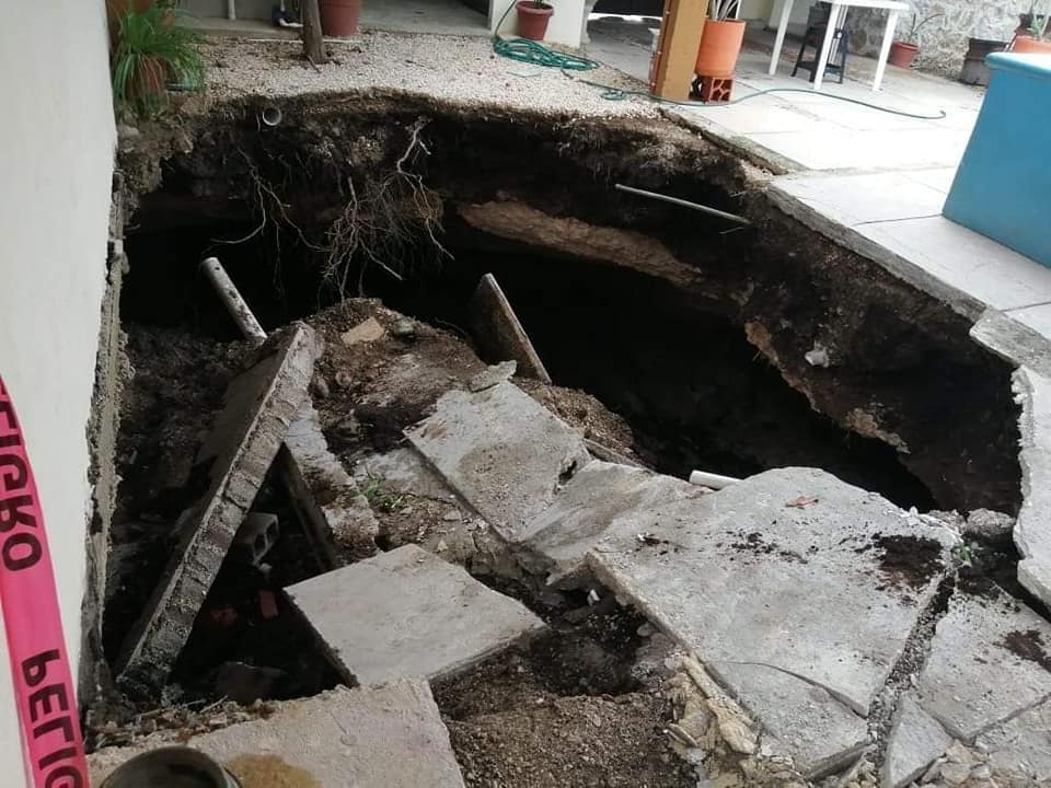 Según los primeros datos, el socavón tiene una medida aproximadamente de 5 con 10 metros, y una profundidad de 2 metros se ubica en el área que ocupaba la terraza de la casa y se señaló que las condiciones climáticas podrían haber influido a que estas entradas que han sido cubiertas, pavimentadas o rellenadas desde hace muchos años, cedieron por la humedad de las lluvias de los últimos días.