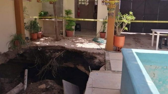 Mérida, Yucatán, 18 de junio del 2021.- Este viernes, se abrió un socavón en una casa de la colonia Bojórquez, situación que obligó al cierre de calles en la zona. El predio No. 544 de la calle 110 con 59-G de la citada colonia, según afirmaron los vecinos, hace años se sabía de la existencia de una cueva justamente en ese cruce.