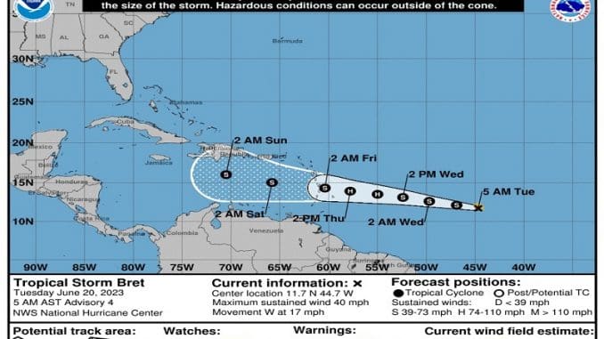 El CNH prevé que Bret se acercará a las Antillas Menores este fin de semana, pero antes se convertirá en el primer huracán de 2023.