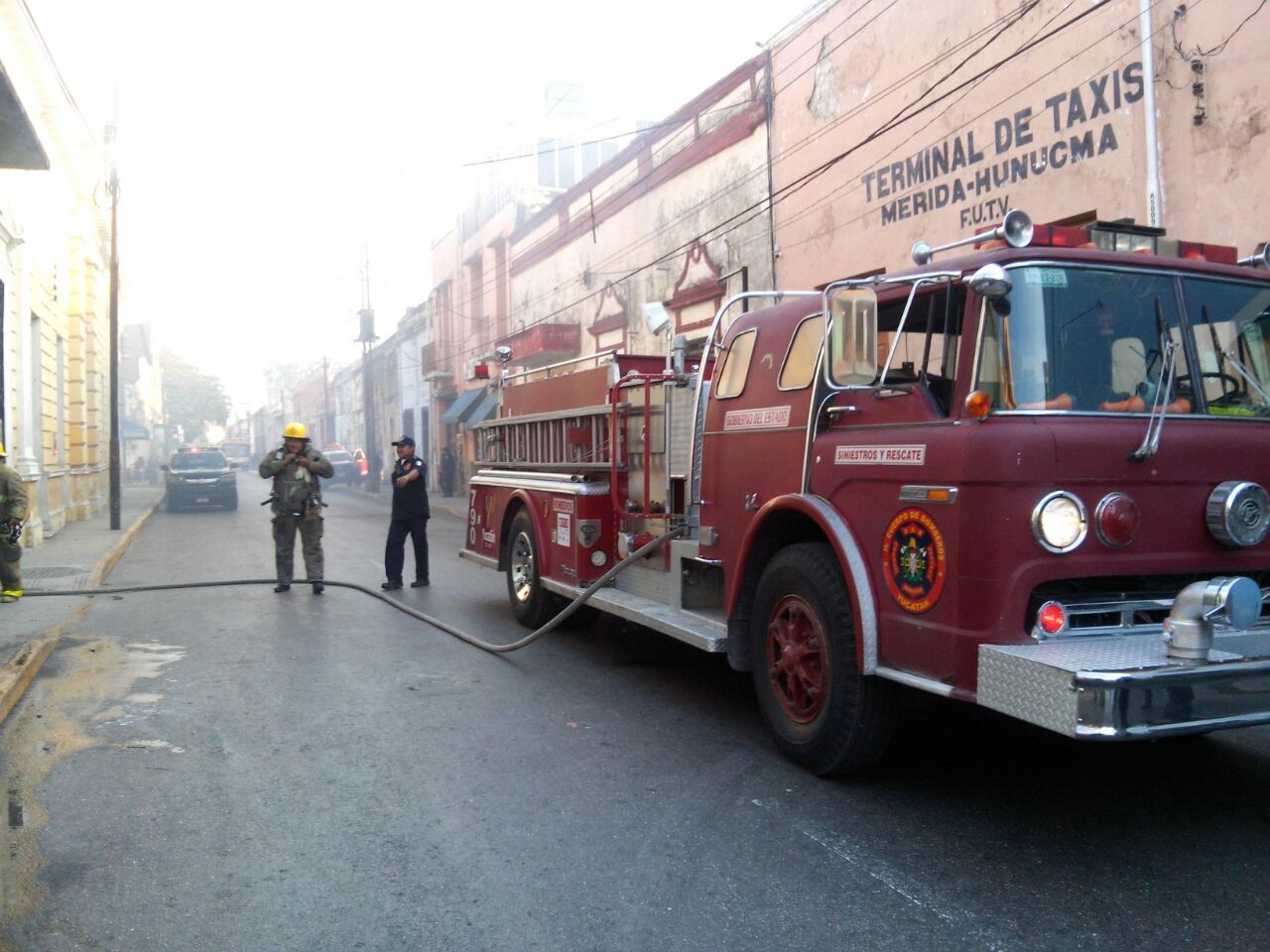 Mérida, Yucatán, 1 de mayo de 2018.- Elementos del cuerpo de bomberos realizaron una rápida movilización para controlar el incendio de una vivienda abandonada localizada en el Centro Histórico de Mérida. No hubo lesionados en este incidente.
