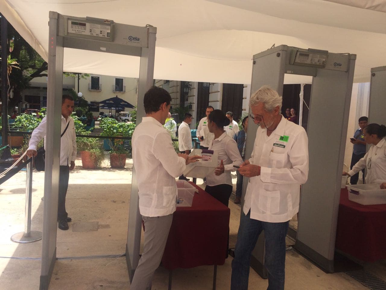 En esa zona se instalaron arcos de seguridad, para revisar a toda persona invitada al evento inaugural.