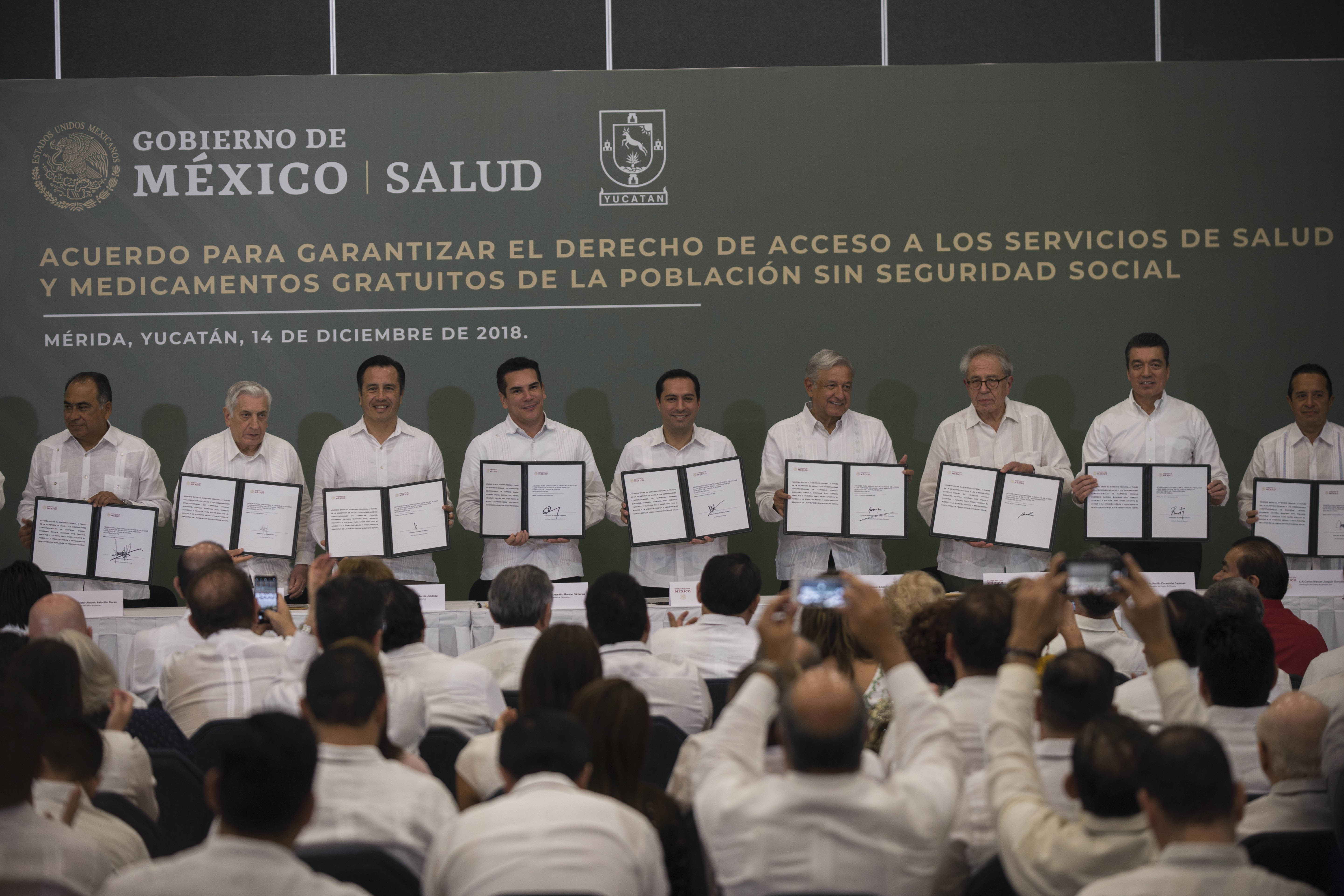 Mérida, Yucatán, 14 de diciembre del 2018.- El presidente de la República, Andrés Manuel López Obrador anunció que los servicios de salud serán federalizados, es decir, la Secretaría de Salud será la encargada de la atención médica para que el sistema de salud “no esté fragmentado”. Además el cuadro básico de medicamentos será eliminado, por lo que habrá acceso gratuito a medicinas.