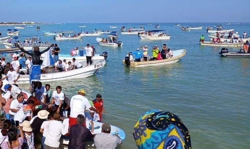Sisal, a 25 de agosto de 2024.- Este domingo, habitantes y visitantes del puerto de Sisal cumplieron con el tradicional paseo en lancha con la imagen del Cristo Negro, la cual se venera en este puerto y Pueblo Mágico desde hace 70 años.
