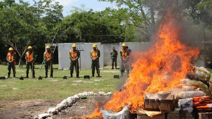 Se quemaron 85 kilos 202 gramos de marihuana; 2 kilos 332 gramos de cocaína, 8 kilos 203 gramos de metanfetaminas y 2 mil 385 pastillas psicotrópicas.