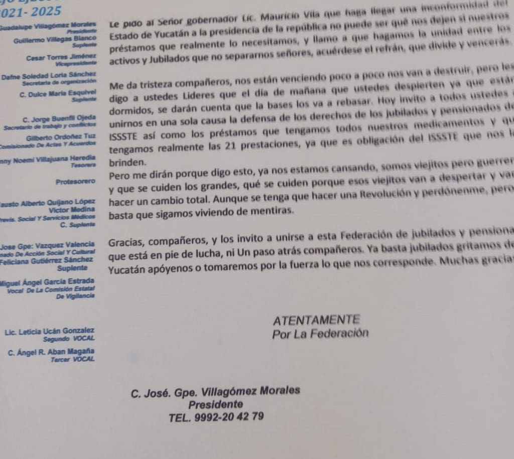 Ante esta situación piden la renuncia del maestro Edgar Díaz, director nacional de prestaciones económicas al implantar un sistema de sorteos que daña totalmente a los jubilados y pensionados.