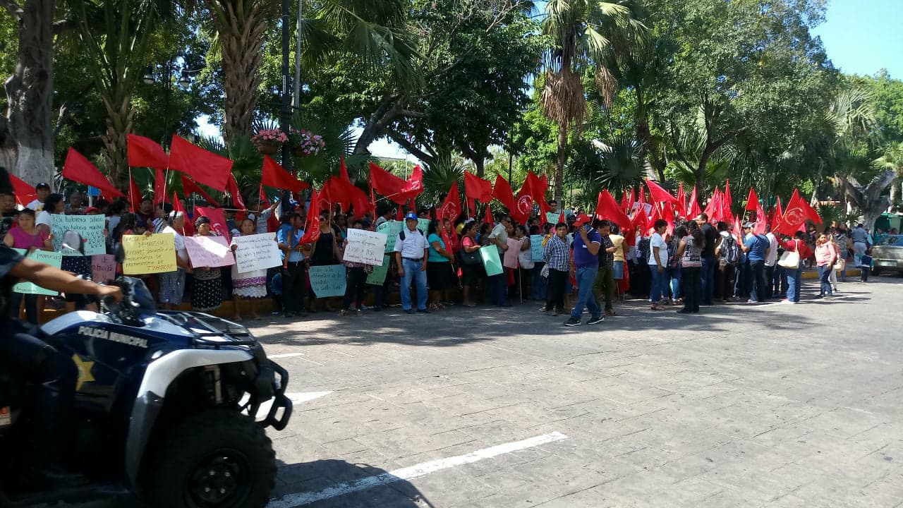 Mérida, Yucatán, 7 de marzo de 2018.– Cerca de 200 integrantes de Antorcha Campesina realizaron una nueva protesta en las puertas del Palacio de Gobierno, donde externaron su preocupación ya que desconocen el presupuesto que les corresponde para este año y temen que los apoyos de los programas sociales no sean entregados debido al proceso electoral .
