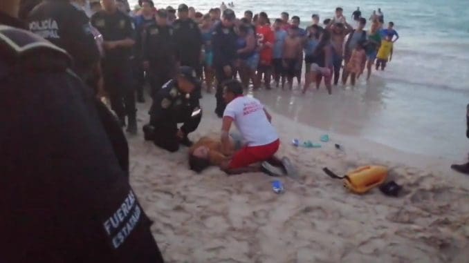 Progreso, Yucatán, 26 de febrero de 2020.- Elementos de la Policía Municipal de Progreso y de la Secretaría de Seguridad Pública rescataron a mujer en presunto estado de ebriedad que se metió al mar y tuvo problemas para salir ya que comenzó a mostrar signos de que se estaba ahogando.