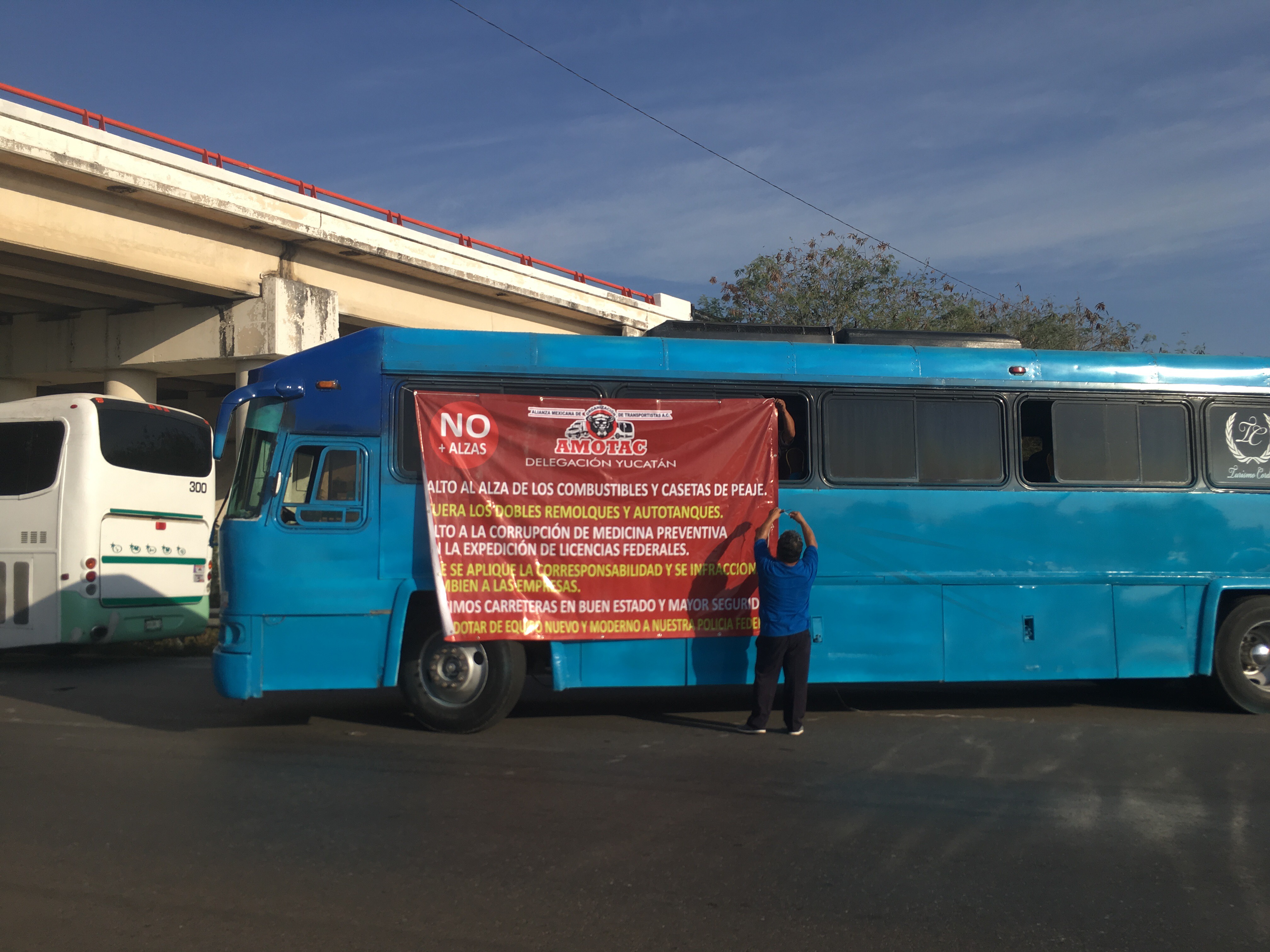 30 unidades de AMOTAC se manifestaron en la carretera Mérida-Campeche
