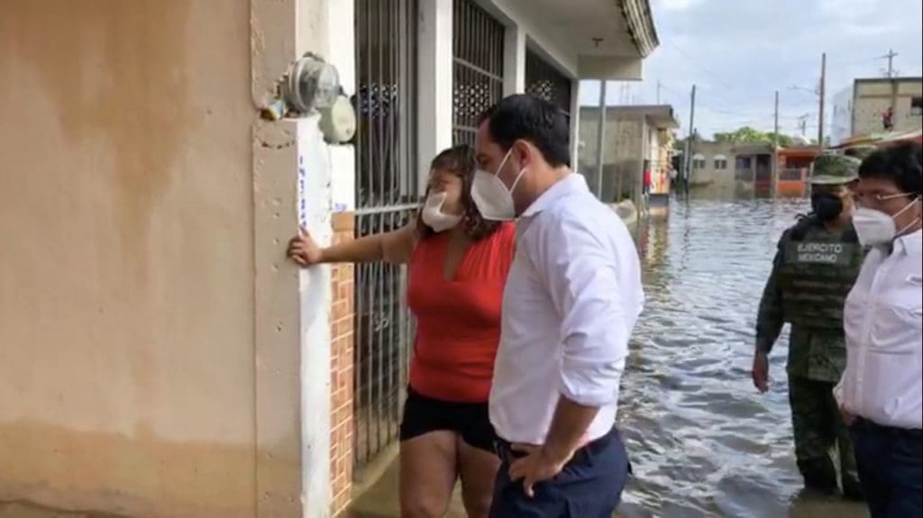 Mérida, Yucatán, 16 de junio de 2021.– Tras llover durante más de 24 horas, las calles del puerto de Progreso se inundaron; este miércoles, autoridades estatales hicieron un recorrido para determinar la gravedad de la situación.
