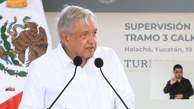 Mérida, Yucatán, 19 de diciembre del 2020.- En una nueva visita del presidente Andrés Manuel López Obrador al municipio de Halachó, Yucatán, para supervisar las obras del tren maya, el mandatario «presumió» que esta obra se está construyendo gracias al presupuesto austero y republicano de su gobierno.