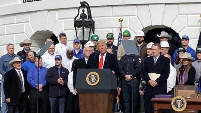 “Es un día de grandes celebraciones en los tres países», dijo Trump en el acto ante unos 400 invitados, entre ellos miembros de su gabinete, legisladores de todo el país, trabajadores, agricultores y directores ejecutivos de empresas, así como funcionarios de México y Canadá.