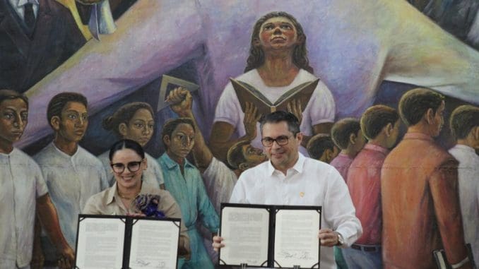 En el edificio central de la UADY, se formalizó el acuerdo entre Carlos Estrada Pinto, rector de la UADY, y Patricia Gilí López, secretaría de FEDECOL, destacando que esto se ha debido realizar en pasada décadas en beneficio de los alumnos.