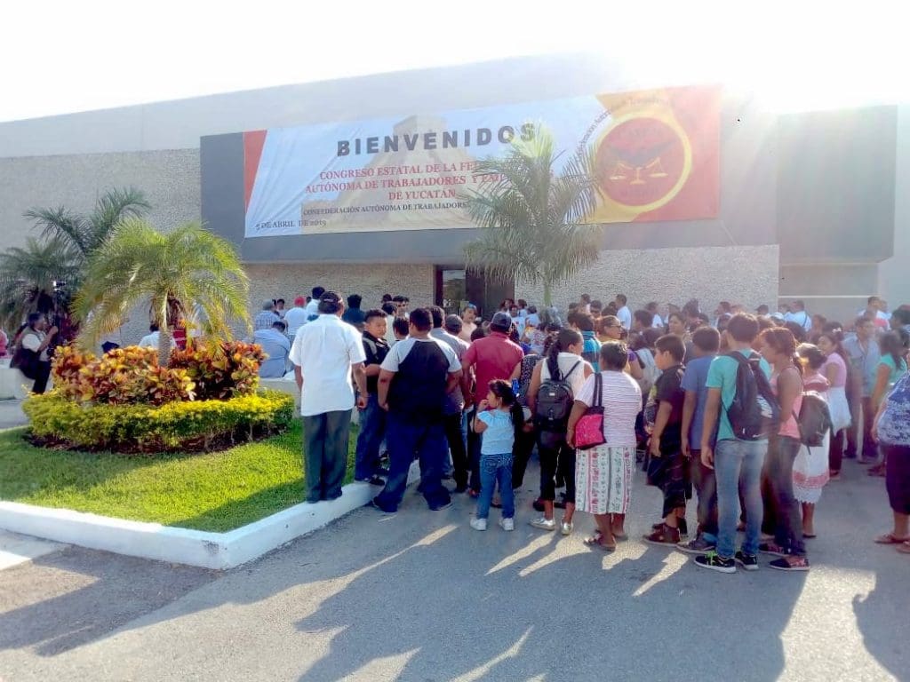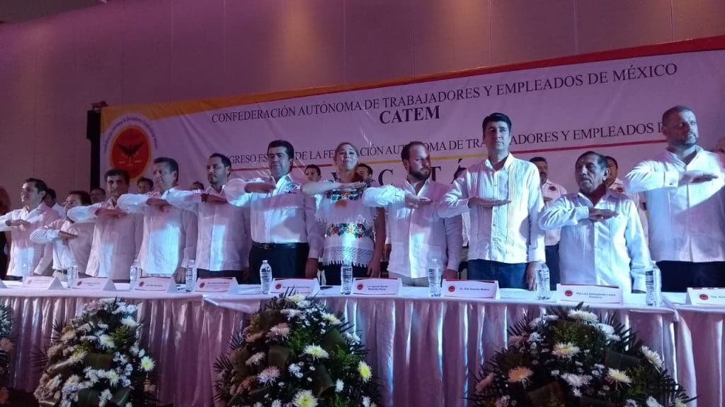 Mérida, Yucatán, 06 de abril de 2019.— Como en los mejores tiempos de la CTM, o de la CROC, el nuevo sindicato llamado Confederación Autónoma de Trabajadores y Empleados de México (CATEM) ligado al nuevo Gobierno Federal, realizó una toma de protesta en Mérida, donde evidenció que aún conserva las viejas y criticadas prácticas de los sindicatos priístas; la gente fue ‘acarreada’, y la gran mayoría de los asistentes no sabían porque estaban ahí.