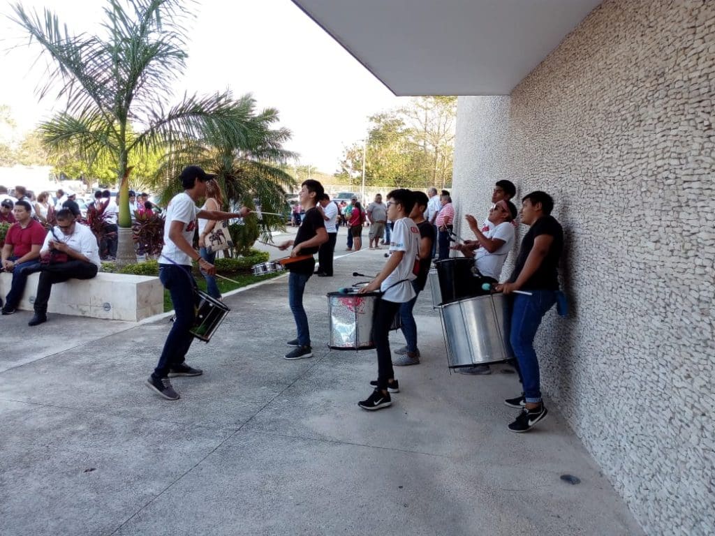 El evento se realizó en el Forum Mayan Hall, de la avenida Industrias No Contaminantes, al norte de Mérida; en el estacionamiento fue común ver como los autobuses y colectivos rentados “desfilaban” trayendo niños, niñas, mujeres y hombres, que descendían para llegar al evento.