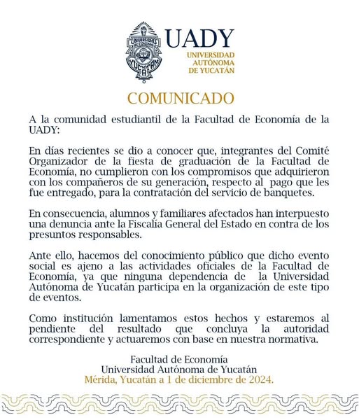 Por su parte, a través de un comunicado, la UADY se deslindó de estos hechos: