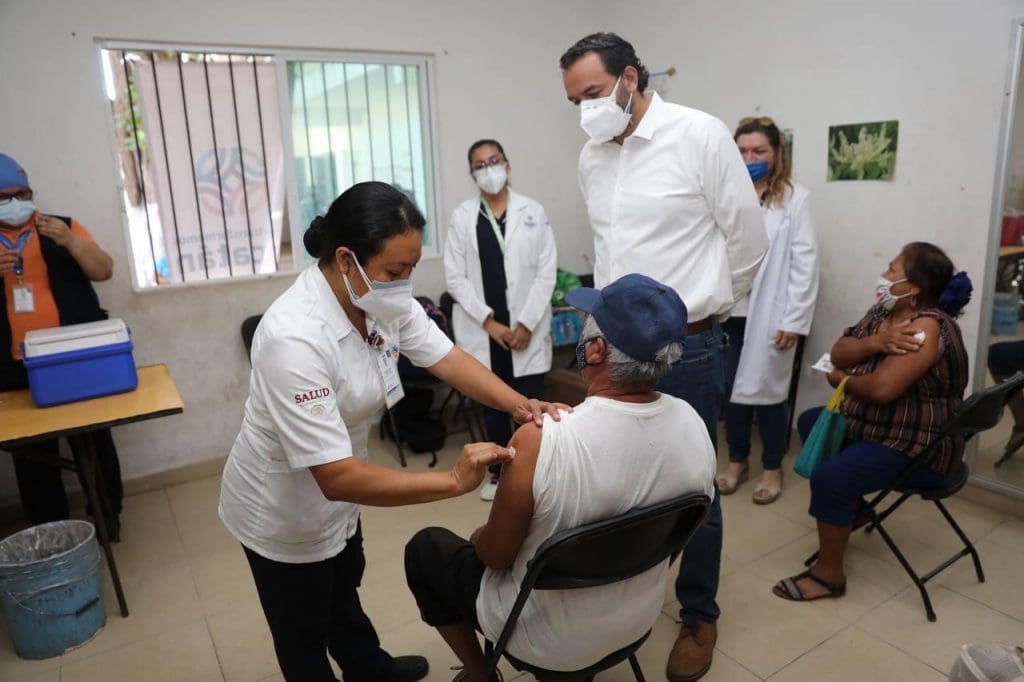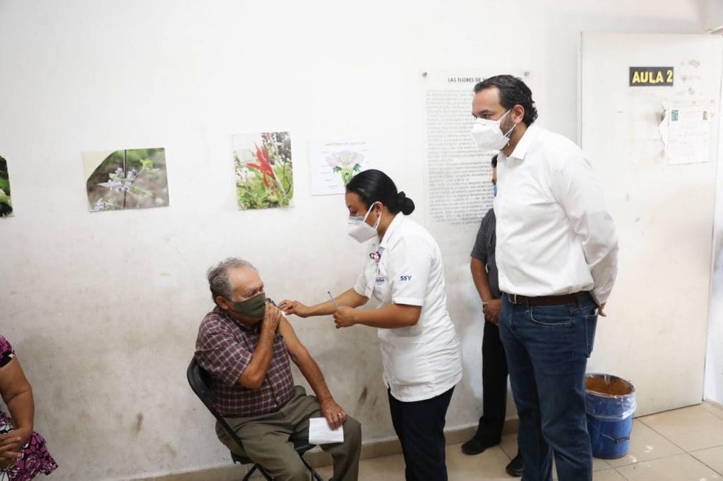 Como instruyó el Gobernador Mauricio Vila Dosal, el titular de la Secretaría de Salud del estado (SSY), Mauricio Sauri Vivas, acudió a la Casa de la Cultura de Hunucmá, sitio que se estableció como punto de vacunación en lugar del Centro de Salud, para constatar la jornada de vacunación a los adultos mayores de dicho municipio.