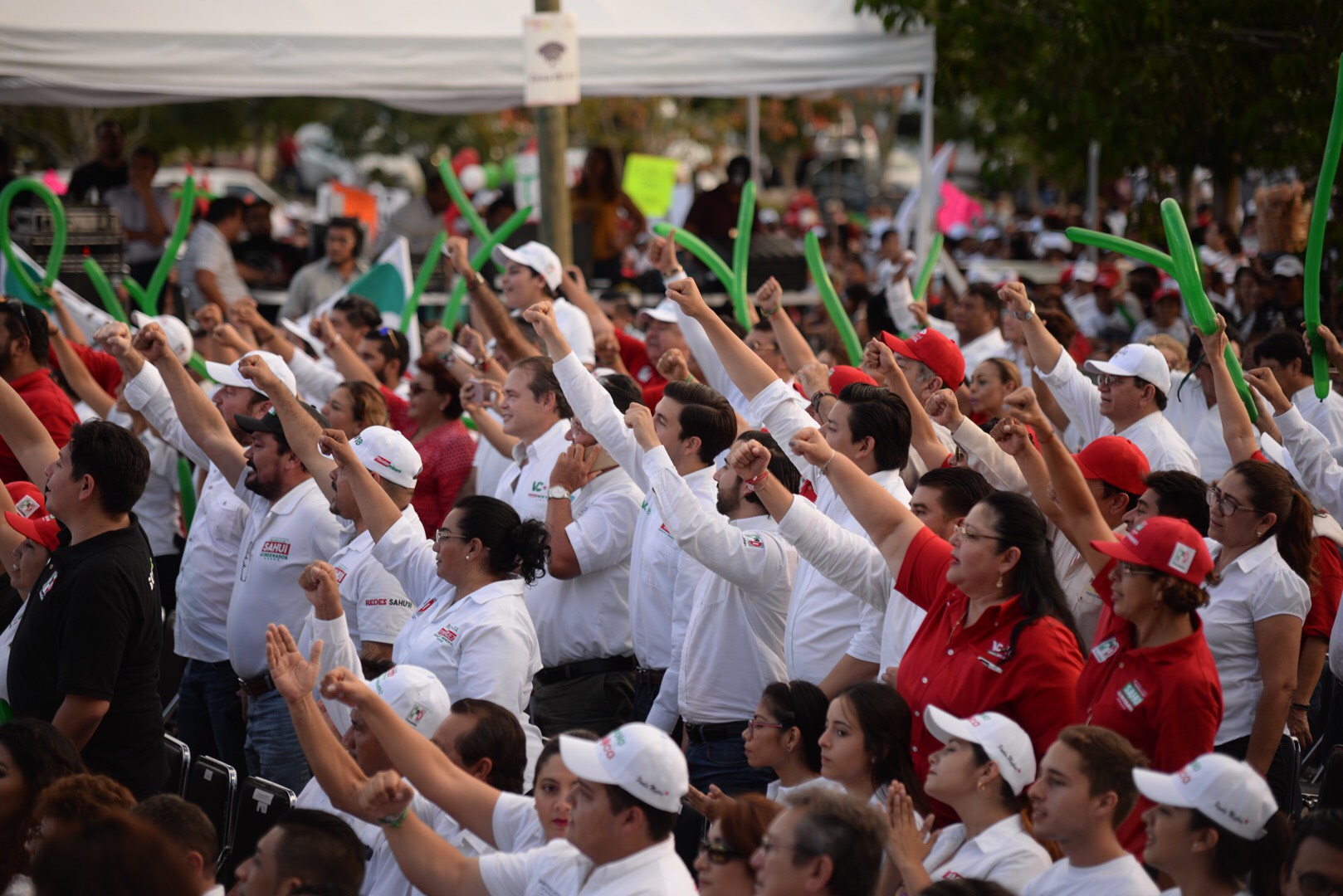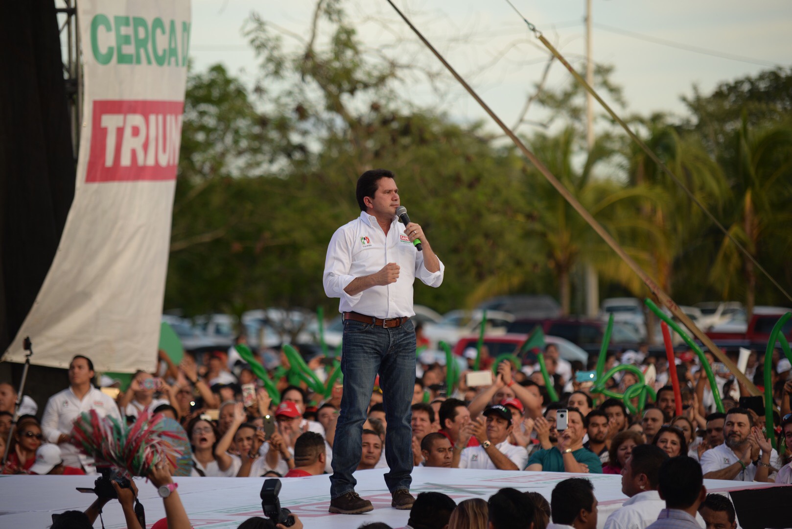 A este evento de cierre de campaña acudieron los candidatos del PRI, PANAL y PVEM a puestos federales y locales, así como el gobernador Rolando Zapata Bello y la coordinadora de la campaña de José Antonio Meade en el sureste, Beatriz Paredes Rangel. (Herbeth Escalante; Fotos de Cuauhtémoc Moreno)