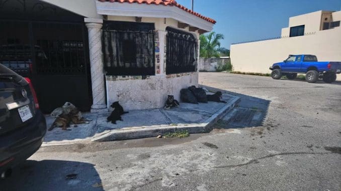 Vecinos del fraccionamiento La Castellana, al norte de la ciudad, se quejaron de esta jauría de perros que se aglomera en las puertas de las viviendas. Dicen que son un peligro ya que desconocen si están vacunados y afirman que dos de estos canes son agresivos si uno intenta acercarse a ellos. Piden al Ayuntamiento de Mérida enviar a la perrera municipal.