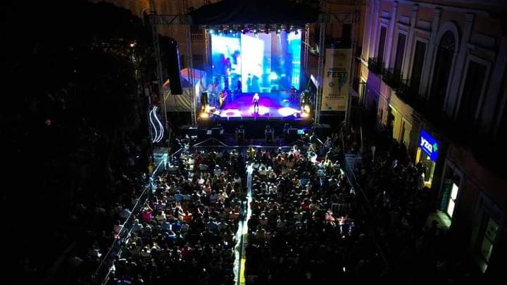 Mérida, Yucatán, a 8 de enero de 2024.- Con gran energía se vivió el concierto de Fey en la Plaza Grande en el marco del Mérida Fest por el 482 aniversario de la fundación de la ciudad.