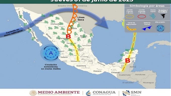 Mérida, Yucatán, a 1 de junio de 2023.- El Servicio Meteorológico Nacional (SMN) indicó que este jueves podrían presentarse chubascos en diferentes zonas de Yucatán, aunque el pronóstico señala que habrá una disminución de la probabilidad de lluvias en la región.