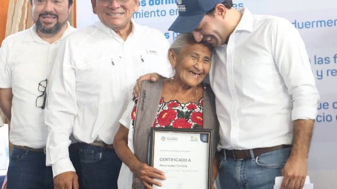 Acompañado del titular de la Secretaría de Desarrollo Social (Sedesol), Roger Torres Peniche, Vila Dosal comenzó la distribución de 70 certificados para acciones de Vivienda Social, con el objetivo de reducir la condición de vulnerabilidad de las familias que más lo necesitan.