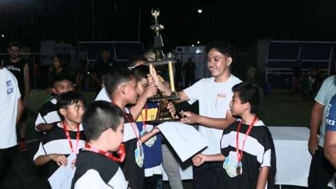 Kanasín, Yucatán, a 24 de junio 2023.- Decenas de familias asistieron anoche a las canchas de fútbol de Villas de Oriente para acompañar a sus hijos en la final del torneo interno de futbolito Kanasín, evento en el que participaron 10 escuelas del municipio.