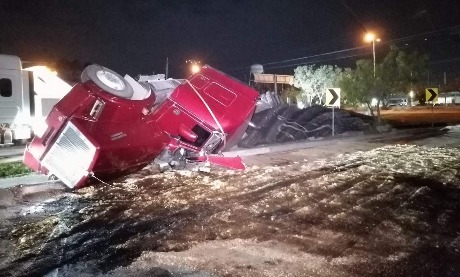 El primero fue un tráiler qué transitaba sobre la vía federal Umán Mérida, cuyo operador al llegar a la entrada al periférico en Kilómetro 0 +500 intentó incorporarse al Periférico, pero tomó demasiado rápido la curva, lo que ocasionó que el peso de su carga venciera a la unidad.