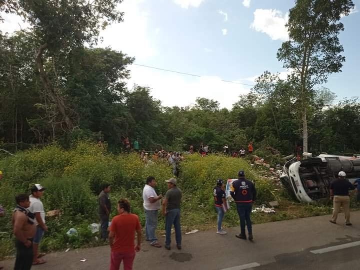 Kantunil, Yucatán, a 11 de Enero.- Poco después de este mediodía, un tracto camión con dos remolques cargado con mercancía de la empresa “Walt Mart” se volcó en el tramo Xocchel – Kantunil; el reporte policiaco indicó que el conductor, de 32 años de edad, resultó ileso.