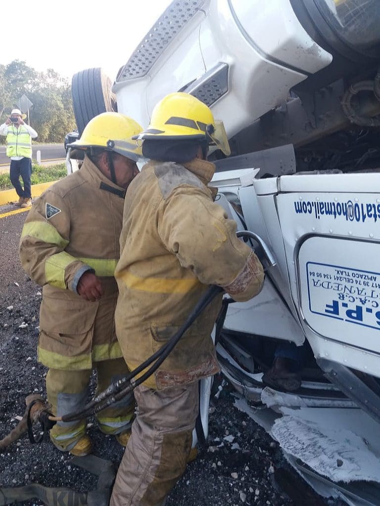 Adrián M., de 43 años, circulaba esta tarde con dirección a la capital campechana a bordo de una unidad Kenworth con remolque, pero al llegar al kilómetro 128 se salió del camino. Al intentar incorporarse de nuevo a la vía, quedó volcado sobre su toldo.