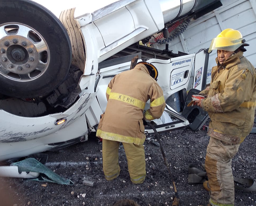 El tráiler de la empresa Castañeda quedó atrapado entre los fierros retorcidos, por lo que tuvo que ser rescatado por bomberos de la Secretaría de Seguridad Pública y después trasladado por una ambulancia a un hospital de Mérida.