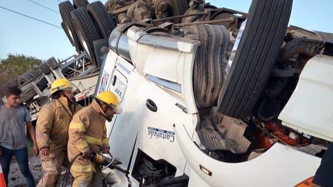 Adrián M., de 43 años, circulaba esta tarde con dirección a la capital campechana a bordo de una unidad Kenworth con remolque, pero al llegar al kilómetro 128 se salió del camino. Al intentar incorporarse de nuevo a la vía, quedó volcado sobre su toldo.