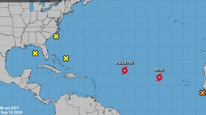 De acuerdo con el Centro Nacional de Huracanes (CNH) se vigila de cerca las tormentas tropicales Paulette y Rene, las cuales se localizan sobre el Atlántico oriental.
