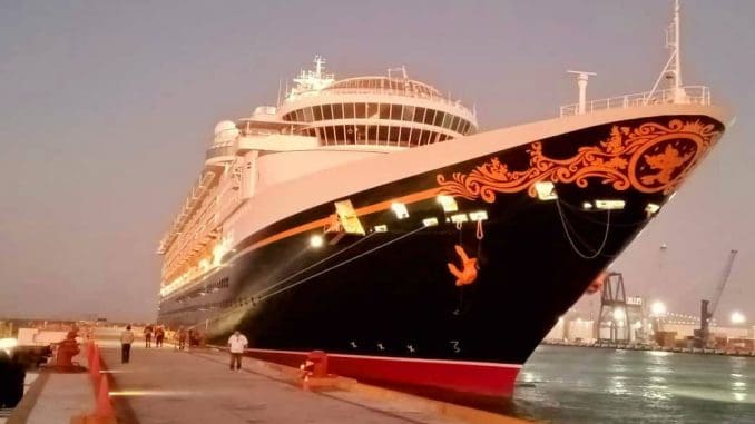 Proveniente de Galveston, Texas, Estados Unidos, este crucero de la naviera Disney Cruise Line arribó a las 6 de la mañana a la Terminal Internacional de Cruceros en el Puerto de Altura de Progreso, desde donde zarpará hacia Cozumel con 3,561 personas a bordo, y finalmente retornará al estado norteamericano.