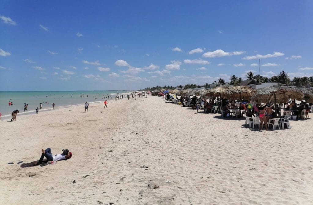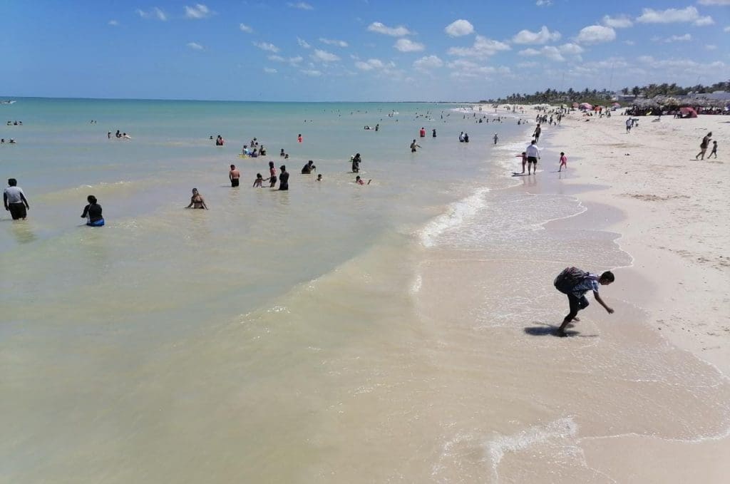 A pesar de que Yucatán aún se encuentra en semáforo epidemiológico en color naranja y de que el día de ayer la Secretaría de Salud del Gobierno del Estado reportó 12 fallecimientos y 80 nuevos contagios por covid, los yucatecos no dudaron el sopesar las altas temperaturas llevando a toda la familia a la costa yucateca.